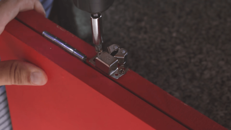 Еще один комплект рояльных петель крепим с противоположного края столешницы, но уже в зеркальном отображении.