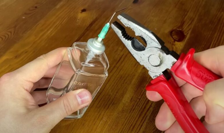 Для удобного распыления духов следует согнуть иглу под углом 90 градусов.