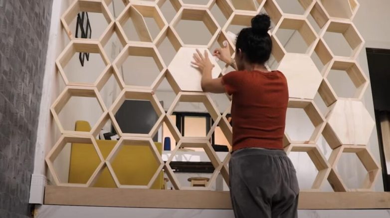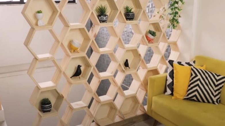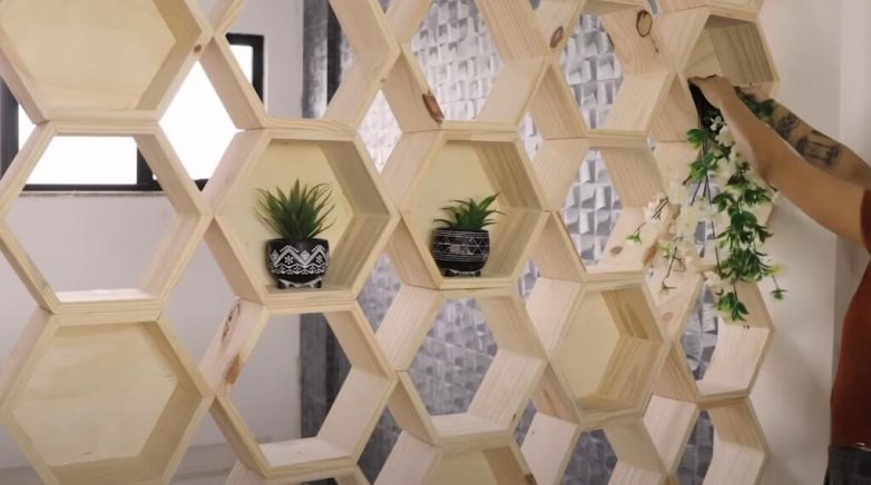 Сегодня рассмотрим один из самых простых и быстрых вариантов — будем строить стильную и оригинальную деревянную перегородку в виде сот (из шестиугольных коробов).