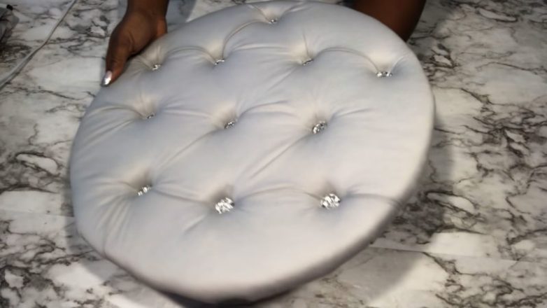 Устойчивый, красивый, самодельный пуф, сделанный из табурета, — потрясающий пример утилизации и переделки ненужных вещей! Пуфик не просто отлично дополняет интерьер — в нём также можно хранить вещи.