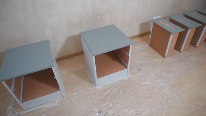 Прикроватные тумбы также загрунтовать и перекрасить + самоклеящаяся плёнка вовнутрь ящиков.