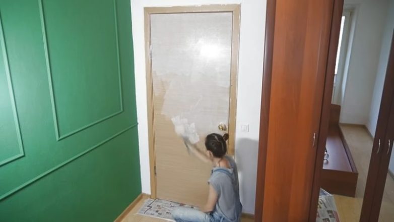 Дверь, шкаф, тумбы также следует загрунтовать и перекрасить, чтобы освежить.
