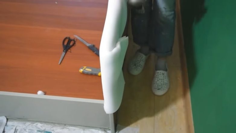 Если у кровати есть жёсткое изголовье, то его можно перетянуть в мягкое. Сначала мебельным степлером закрепляется самый дешёвый поролон, затем — слой синтепона.