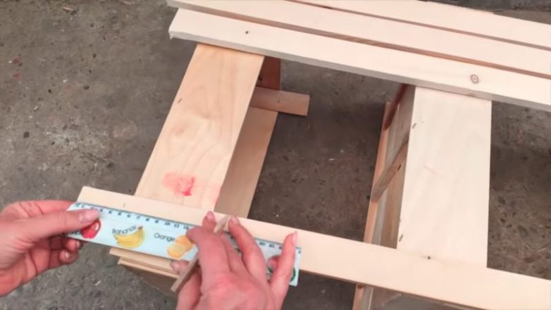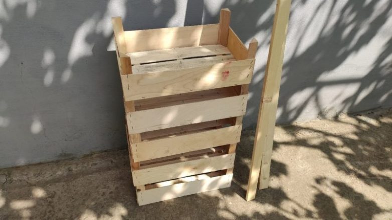 Для этой поделки необходимы 5 деревянных ящиков и 4 планки той длины, которая вам необходима. На планках сразу отметьте около 5 см для ножек.
