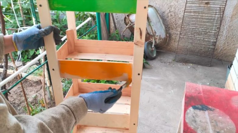 Впечатляющая, устойчивая и стильная полка-стеллаж готова. Она подойдет не только для улицы и дачи — в разных вариациях её можно использовать и внутри дома!