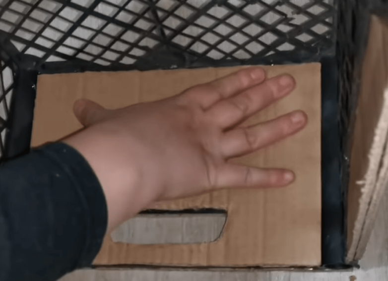 Вместо ручек делаем прорези. Для этого на одной из сторон каждого ящика удаляем пластиковые перемычки, а затем делаем соответствующее отверстие в картоне.