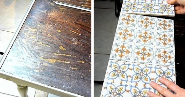 Вы только посмотрите на этот обновлённый столик! Из старого, потёртого и непривлекательного он превратился в дизайнерский и ультрамодный.