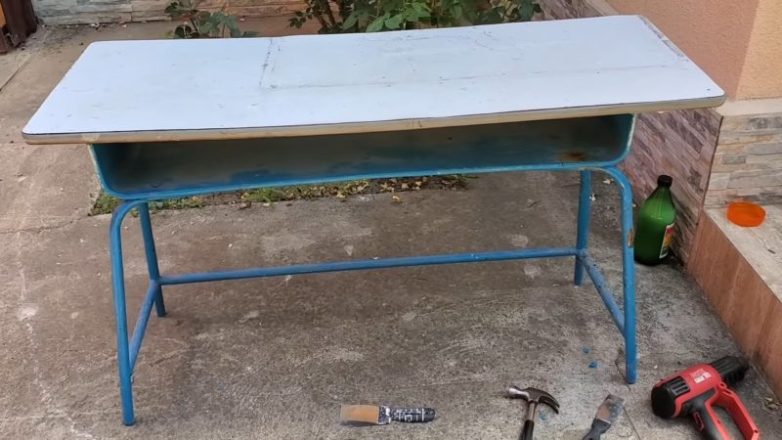 Этот старенький немецкий стол-парта стоял за ненадобностью на летней кухне довольно долгое время, пока мастерица не взялась переделывать его для собственного интерьера. И получилось весьма достойно!