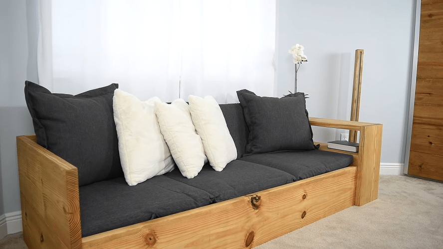 Конечно для реализации идеи придется потрудиться, но результат того стоит. Предстоящая работа требует точности и соблюдения определенной последовательности действий. При этом сложной она не является, особенно для тех, у кого есть в наличии столярный инструмент. Освоив тонкости сборки, можно существенно сэкономить и получить добротную и долговечную софу, способную при необходимости стать даже двуспальной кроватью по цене материала.