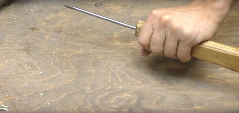 Когда заготовка для ножки будет вырезана, обтачиваем ее, зашкуриваем поверхность, скругляем острые края.
