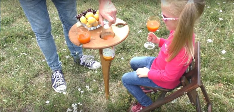 Особенно она пригодится тем, кто любит хотя бы время от времени выезжать на природу. А самоделка эта – вот такой мобильный и компактный столик, который прекрасно стоит на земле и много места в багажнике не занимает.