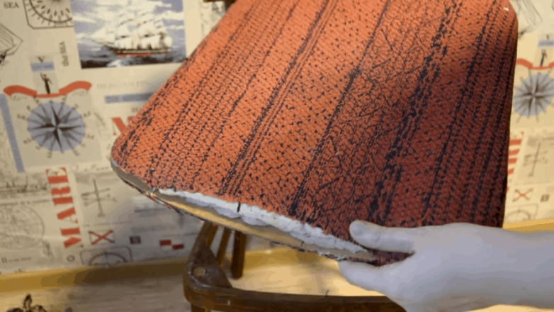 Аналогично поступаем и с обивочной тканью. С той разницей, что здесь припуски будут еще больше. Их должно хватить, чтобы скрыть синтепон. Готовую сидушку крепим к обновленному каркасу.