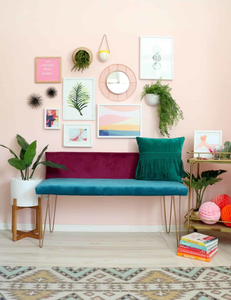 Эту шикарную скамеечку для уютного уголка хозяева сделали своими руками, собрав из нескольких простых деталей. Она устойчивая, красивая, мягкая и просто стильная! За основу можно взять только идею сборки скамьи, а детали менять по своему усмотрению: например, выбрать другую ткань, ширину и длину спинки, ножек и т. д. Оцените несложный мастер-класс по созданию стильной вельветовой скамеечки!