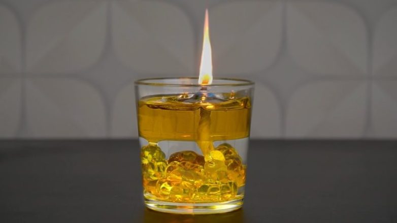 Также можно добавить немного ароматического масла, чтобы свеча не просто горела, но также наполняла помещение благоухающим ароматом. Будет очень романтично.