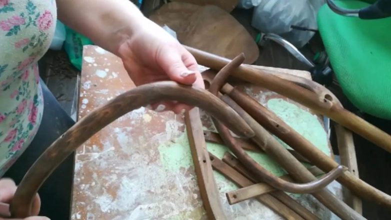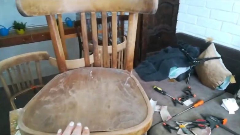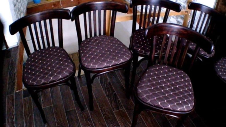 Прежде всего, старые стулья следует разобрать на детали. Далее, детали с трещинами нужно заклеить столярным клеем ПВА, смешанным с древесной пылью. Следующий этап — зачистка. Используйте наждачную бумагу, чтобы выровнять поверхность деталей стульев.