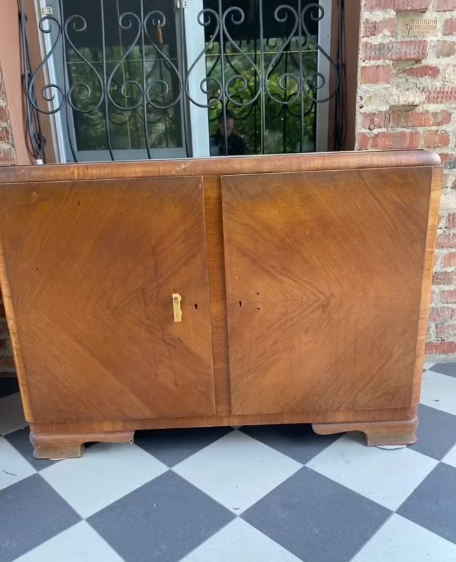 Вот как выглядел буфет до реставрации. Он состоял из двух частей: нижний комод и верхняя тумба. Части разделили на два элемента.
