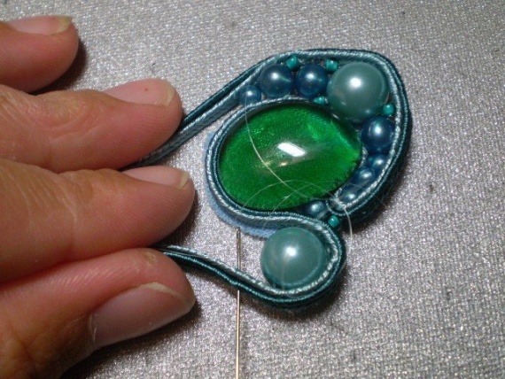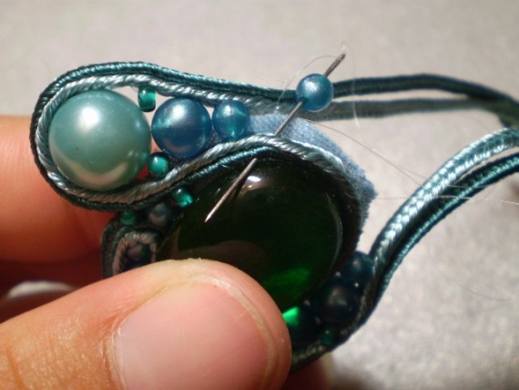 В результате у нас кончики сутажных шнуров встречаются на середине.