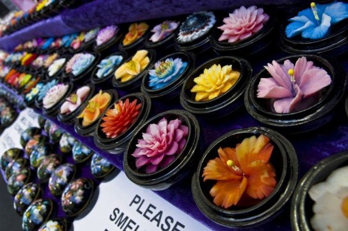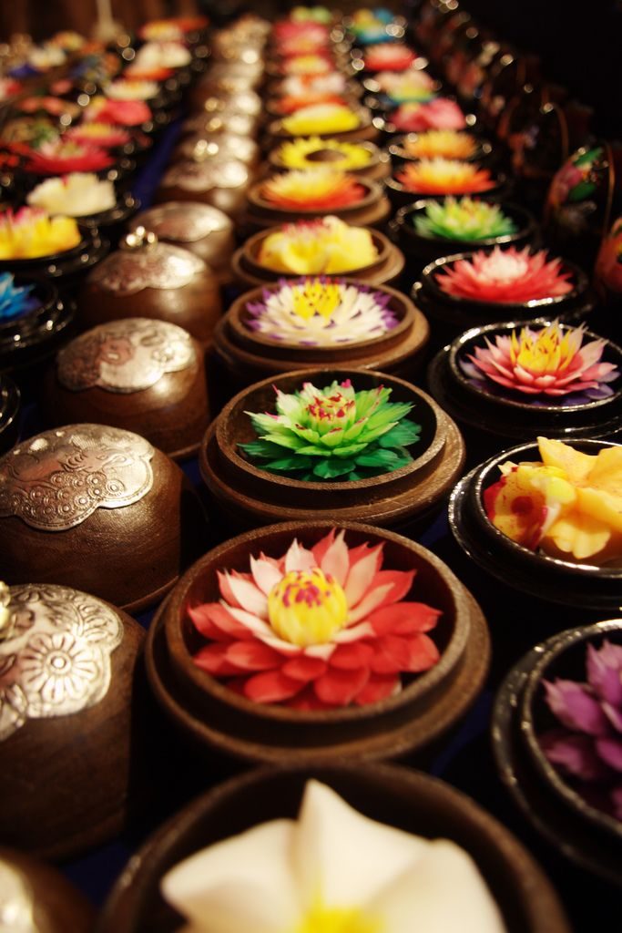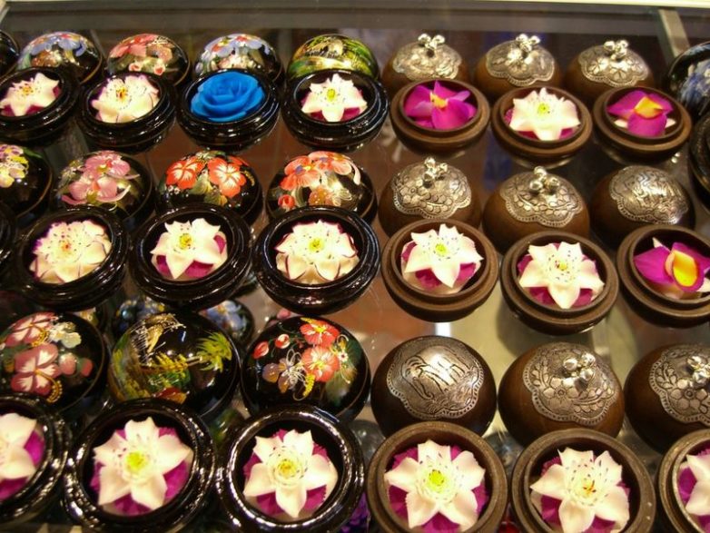 Но сделаны они из обычного туалетного мыла. Такие необычные сувениры продаются на тайском рынке в окрестностях Чианг Рай. Все цветы уникальны, вырезаны в различных стилях, разных цветов и размеров, обладают душистым ароматом.