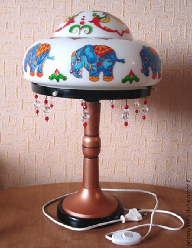 Что дано: обычная настольная лампа с матовым стеклянным плафоном, скучная и совершенно обычная.