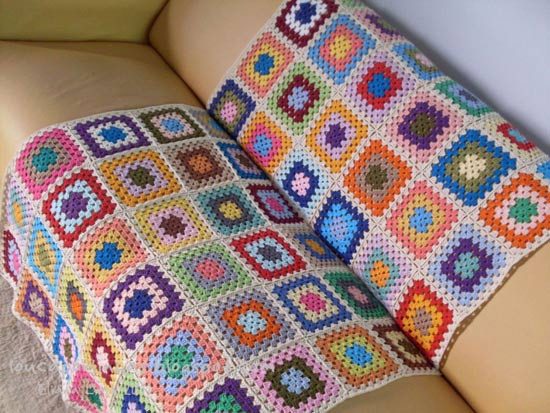 Каждый следующий квадрат цветом основной нити пришиваем к предыдущему, формируя нужный вам размер пледа.