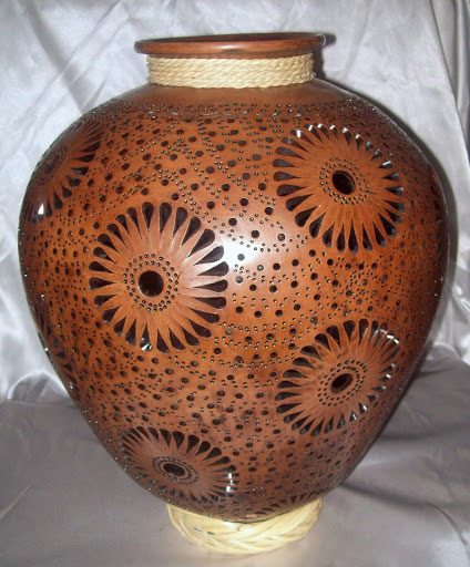 Это изобретение принадлежит Доне Розе, которая, являясь потомственным гончаром, в 50х годах прошлого века придумала такой необыкновенный способ завершающей оттелки керамики!