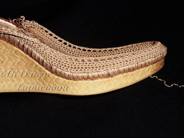 Итак, приступим. У моей подошвы, по верхнему краю идет окантовка, именно её я и обвязывала.