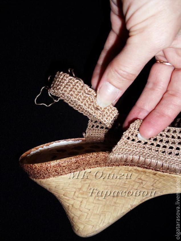 Реставрация обуви, вязаные босоножки