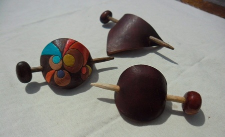 Вставьте колышек в отверстия кожи, Ваша заколка готова!