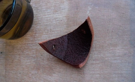 Положите кусочек кожи в чашку (форма чашки должна быть такой, чтобы Ваш кусочек кожи мог принят полуизогнутую форму) с закипевшей водой. Пусть она постоит пару часов в воде.