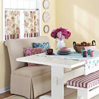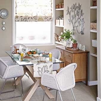 Это обеденное место на кухне получает освещение не только от окна, но и от светлых поверхностей стен кухни, и от светлого кухонного стола.