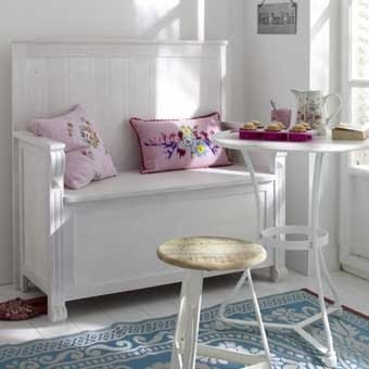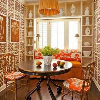 Это стильное обеденное место на кухне сочетает в себе практичность и уют. Ящики под скамейкой вместят кухонную утварь, а кухонные шкафы по бокам создают эффект защищенности и уединения.