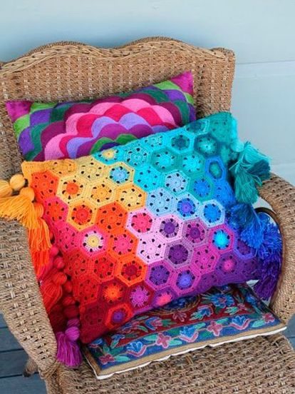 Лично мне разноцветные подушки, вязанные крючком, напоминают уютный бабушкин дом. Раньше, на мой взгляд, вещи ручной работы ценились гораздо больше, чем сейчас. Это не удивительно, ведь тогда и разнообразия материалов такого, как сейчас, не было! Я уже не говорю о схемах вязания. Это сейчас все, что душе угодно, можно найти в интернете!
