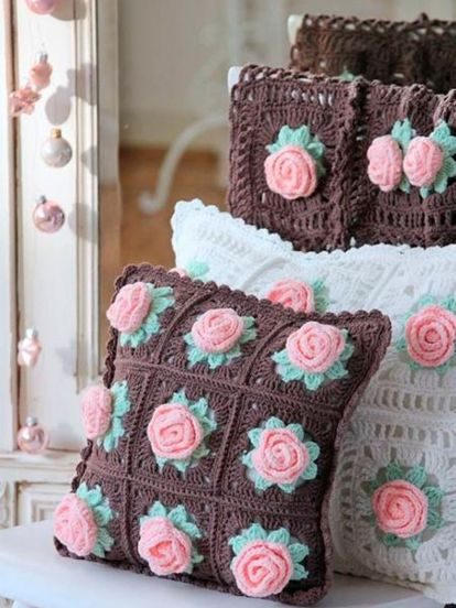 Интересные подушки, вязанные крючком