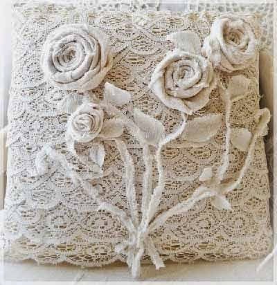 Стала бродить по интернету в поисках интересных идей декоративных подушек и натолкнулась на изумительной красоты кружевные подушки с цветами. Вот и загорелась сделать что-нибудь подобное.