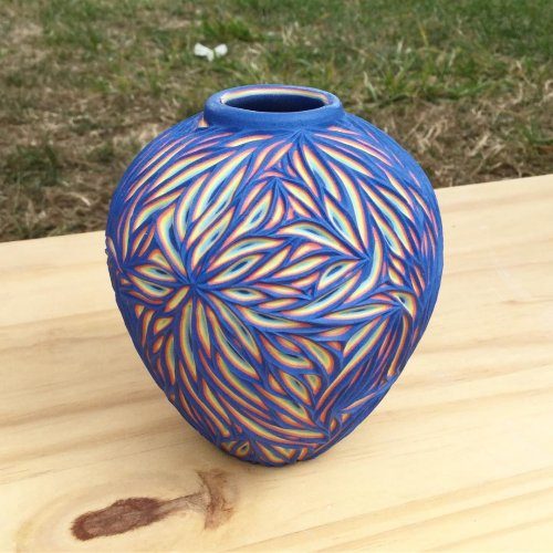 Робертс, который работает в собственной компании Forest Ceramic Company, смешивает цветную глину, чтобы затем на своих керамических изделиях вырезать красочные узоры, вдохновляясь природой. Для этого он использует инструменты для резьбы.