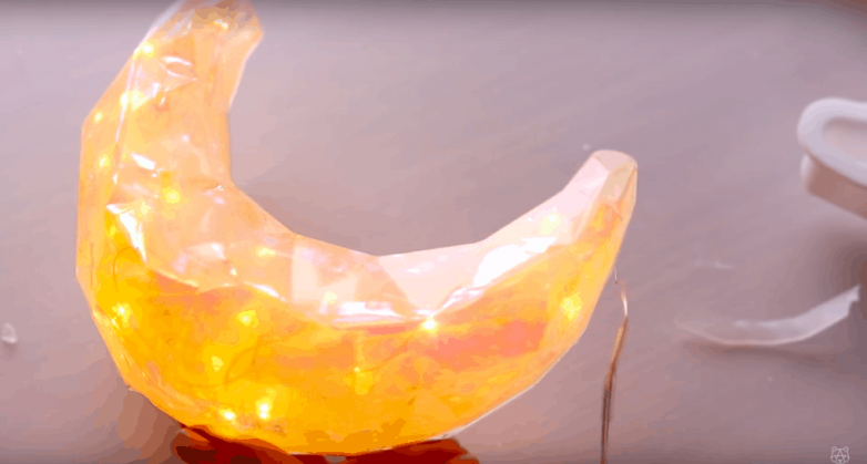 Светильники же и ночники из эпоксидной смолы сегодня пользуются особой популярностью. Например, вот такой ночник-полумесяц вы легко можете сделать и самостоятельно. Он не только осветит, но еще и украсит вашу комнату, а кроме того он наверняка будет индивидуальным.