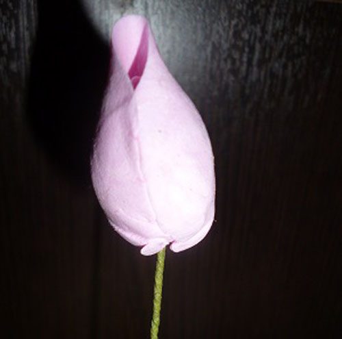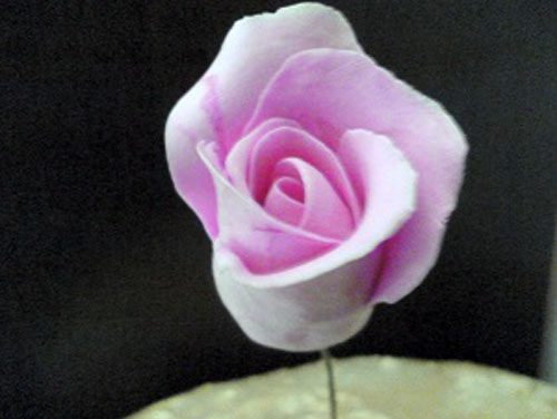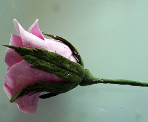 И начинаем формировать бутон. Приклеиваем лепестки к капельке. Если мы работали быстро, то глина не успела подсохнуть и прекрасно крепится к основанию. Если уже подсохла, то прибегаем к помощи клея ПВА.