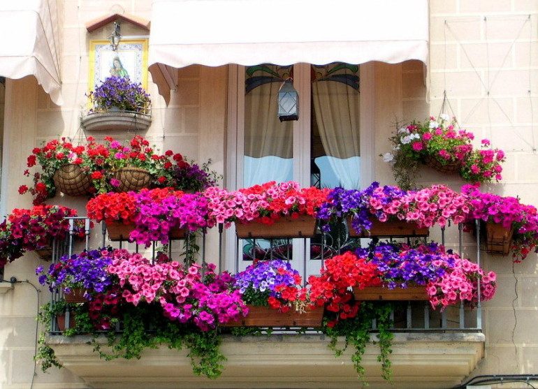 Как украсить балкон цветочными кашпо
