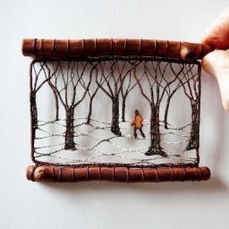 Тонкие шёлковые нити, обвитые вокруг крошечных деревянных каркасов, создают замысловатые сцены в изящных скульптурах Агнес Херцег (Ágnes Herczeg).