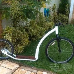 Из ненужных запчастей от старого велосипеда (их можно найти на металлоприемке или, например, в гараже у соседа) можно сделать большой самокат. Для его изготовления потребуется передняя вилка, руль и два колеса разного диаметра.