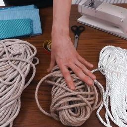 Сшить такую красоту легко и увлекательно! Вам понадобится самый минимум материалов: только верёвка и остатки ткани. Шить необходимо на швейной машинке.