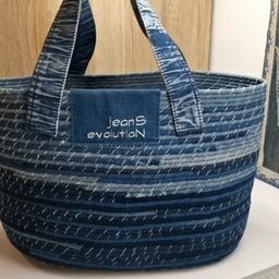 Для этой идеи подойдут обрезки джинсовой ткани и всё то, что осталось от предыдущих поделок. У вас получится эффектное полотно, из которого можно пошить и сумку, и косметичку, и корзинку, и подставку, и много чего другого!