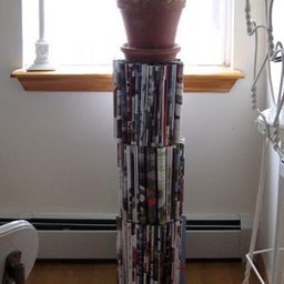 Если к журнальным листам подойти со знанием дела, то из них вполне могут получиться емкости для хранения, декор предметов интерьера и даже мебель! Не верите? Смотрите сами – лот номер один — «тумба для комнатного цветка».