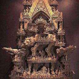 Первое, что хочется сказать, увидев эту скульптуру, — это нереально! Но подождите, рассмотрите каждую фигурку, каждую деталь — это взрывает мозг! Все сделано вручную, размеры скульптуры — около 2 м в высоту и почти 1 м в ширину.