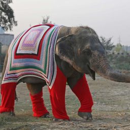 Зимы на севере Индии бывают довольно холодными, поэтому волонтёры из зоозащитной организации Wildlife SOS Elephant Conservation and Care Center решили связать уютные пёстрые свитера, чтобы согреть спасённых ими слонов.