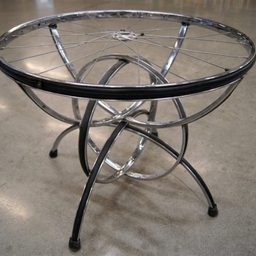 Необычный кофейный столик из велосипедного колеса и стекла