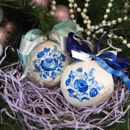 Делаем пряничный новогодний шарик с росписью «Гжель»