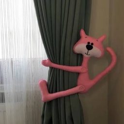 Эта идея шьётся легко, причём без машинки, а получается просто замечательно! Сшейте милого котика, который будет выполнять функцию подхвата для штор! Прекрасная идея для комнаты ребёнка.