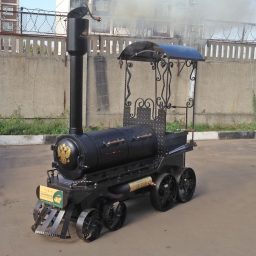 Перед юбилеем шефа, мы долго обсуждали, что же ему подарить и решили, что лучший подарок — сделанный своими руками. Идея создания барбекю в виде паровоза была почерпнута из интернета, но весь вид и оригинальную конструкцию придумали сами. Сроки — две недели.