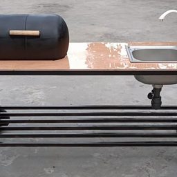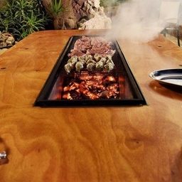 Стол, о котором мы сегодня хотим рассказать, представляет собой комфортное сочетание барбекю и обеденного стола для большой компании. В его середине вмонтирована жаровня, на которой каждый может себе приготовить то, что ему нравится.